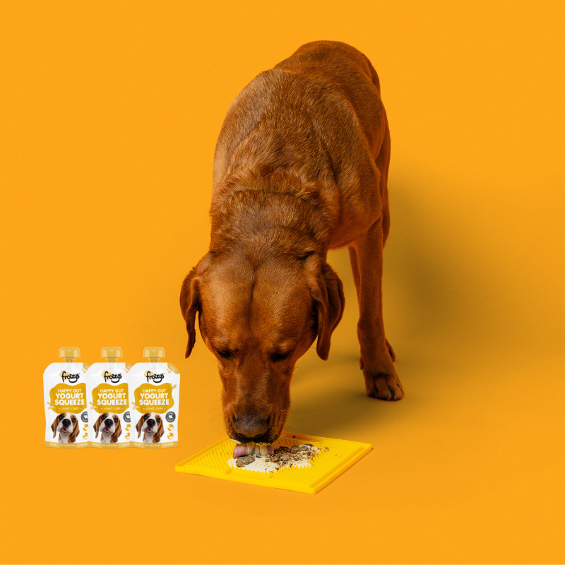 Squeezable goodness everyday - Frozzys Happy Gut Yogurt Squeeze Chicken is the ultimate daily boost for your dog's health and mobility!